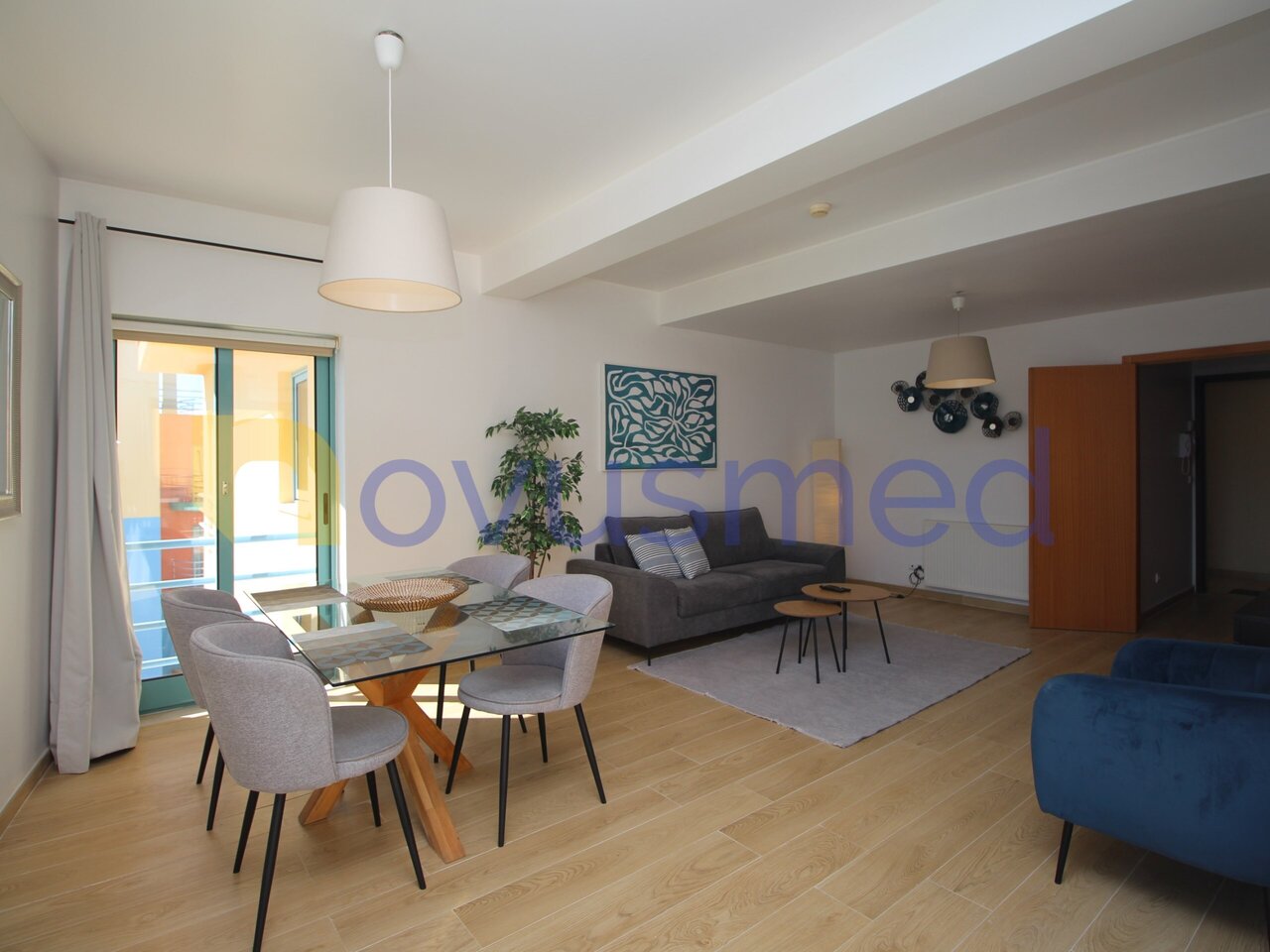 Diese Wohnung ist komplett möbliert und ausgestattet und verfügt über ein helles Wohnzimmer mit Zugang zu einem nach Süden ausgerichteten Balkon, der den ganzen Tag über hervorragendes Sonnenlicht bietet. Die Küche ist praktisch und funktional und voll ausgestattet mit allen notwendigen Geräten. Das Schlafzimmer, komfortabel und geräumig, sorgt für Privatsphäre und Komfort, ergänzt durch zwei Kleiderschränke und ein voll ausgestattetes Badezimmer.